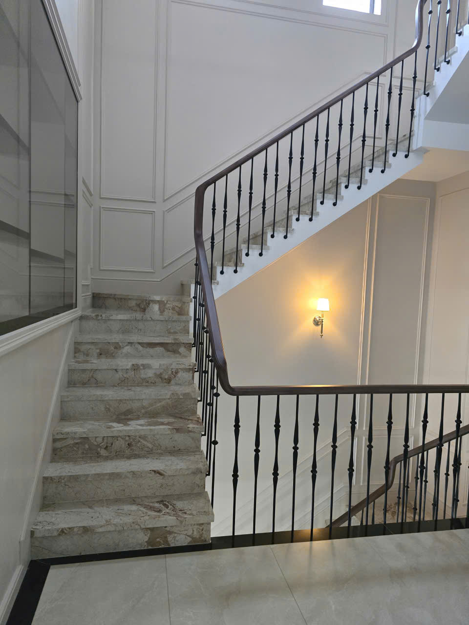Thi công đá hoa cương không đơn giản chỉ là lắp đặt. Đây là công đoạn đòi hỏi kỹ thuật tỉ mỉ trong cắt đá, bo cạnh, mài bóng, căn chỉnh độ dốc và độ bám. Một đơn vị thi công chuyên nghiệp sẽ đảm bảo độ chính xác từng chi tiết, giúp cầu thang chắc chắn, không bị nứt, không kêu và có tính thẩm mỹ cao.