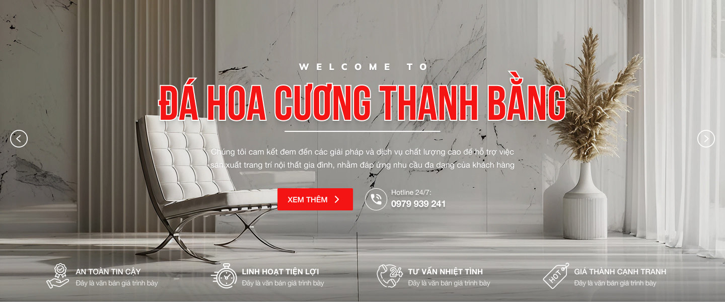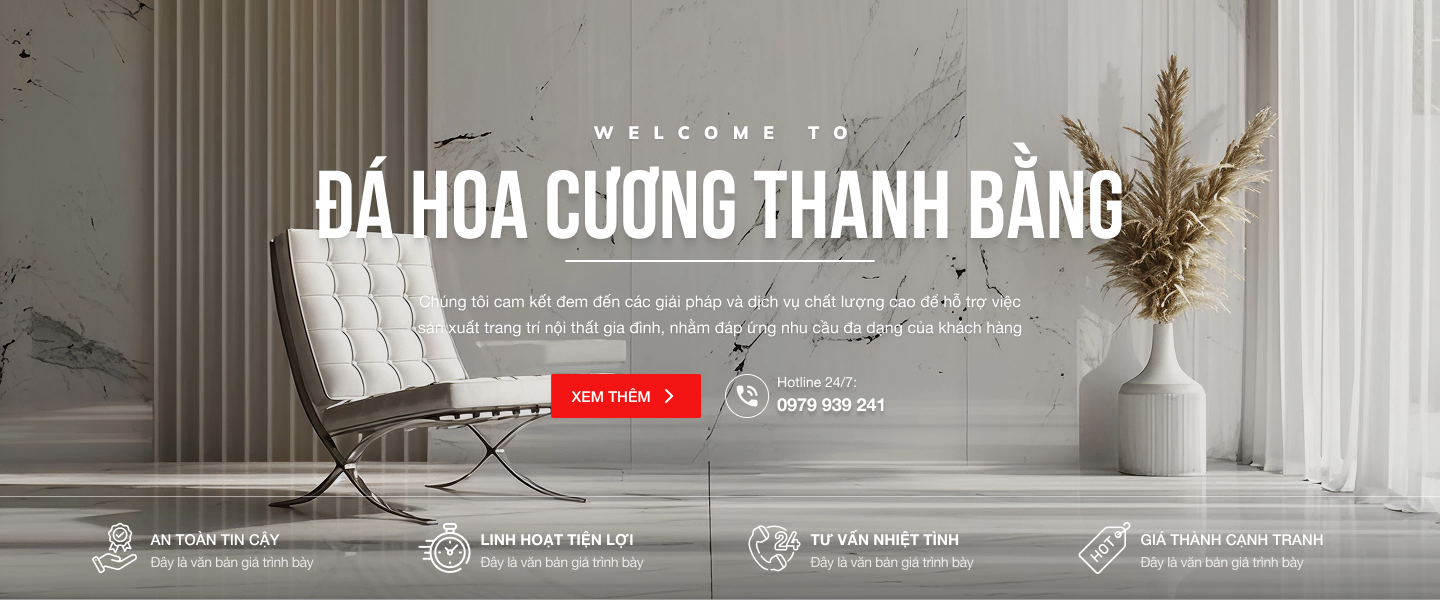 Cơ sở đá hoa cương Thanh Bằng là một đơn vị chuyên cung cấp và thi công các sản phẩm đá hoa cương cao cấp. Với nhiều năm kinh nghiệm trong ngành, cơ sở tự hào mang đến những sản phẩm đá hoa cương chất lượng, đa dạng về mẫu mã và màu sắc, phù hợp với nhu cầu xây dựng và trang trí nội thất. Thanh Bằng cam kết sử dụng nguyên liệu đá tự nhiên, đảm bảo độ bền, đẹp và tính thẩm mỹ cao. Đội ngũ kỹ thuật viên tay nghề cao của cơ sở luôn sẵn sàng tư vấn và thực hiện các công trình từ đơn giản đến phức tạp, đảm bảo sự hài lòng cho khách hàng. Cơ sở đá hoa cương Thanh Bằng luôn đặt chất lượng sản phẩm và dịch vụ lên hàng đầu, xứng đáng là đối tác tin cậy trong mọi công trình xây dựng.