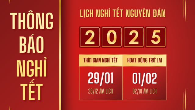 THÔNG BÁO LỊCH NGHỈ TẾT NGUYÊN ĐÁN 2025 Kính gửi Quý khách hàng thân thiết, Nhân dịp Tết Nguyên Đán 2025, chúng tôi xin trân trọng thông báo về lịch nghỉ Tết của chúng tôi đến với mọi người. Đây là dịp đặc biệt để gia đình, bạn bè sum vầy, vì vậy chúng tôi sẽ tạm thời đóng cửa để dành thời gian cho các nhân viên và đội ngũ phục vụ quán ăn được nghỉ ngơi và sum họp bên gia đình.